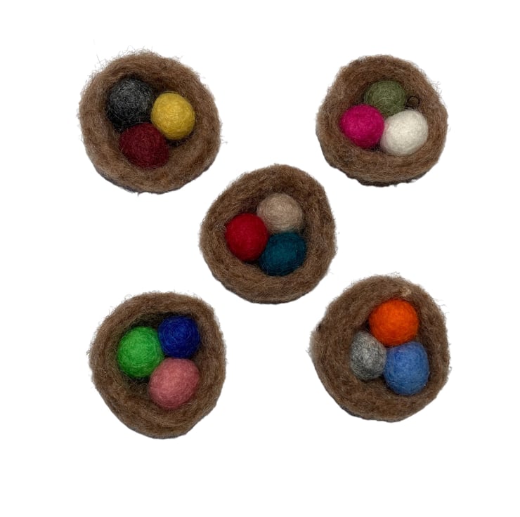 Please note: as these items are handmade they will all differ slightly, you may not receive the one pictured and the felt eggs may be different colours from those shown.