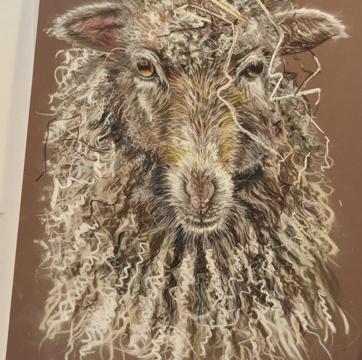 This is my second sheep portrait completed in pastel and pencil. This is ' Sammie' . She is a Skudde. A nordic, short tailed, heather sheep. I loved all the textures and colours in the photo I used as a reference. I also loved the hay in her fleece too. It was quite a challenge trying to capture all this in the drawing. I used layering and also the mix of pastel and pencil to achieve this. Many thanks to @ susieswol.nl in the Netherlands for her permission to let me use her photo as a reference.