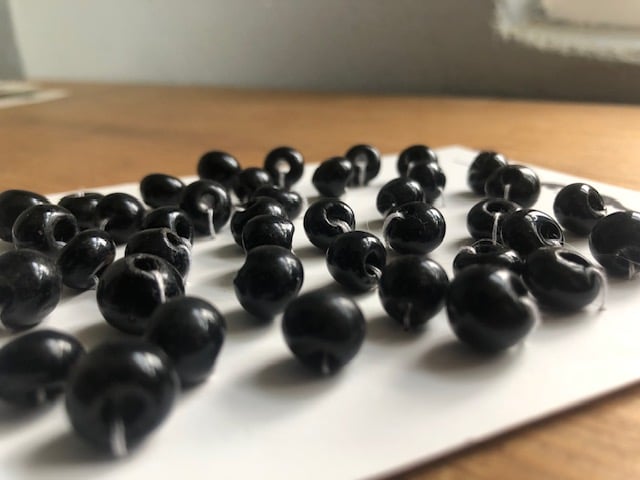 40 Vintage Black Glass Chunky Seed Beads sizes range from 3 - 5 mm, in lovely nick!