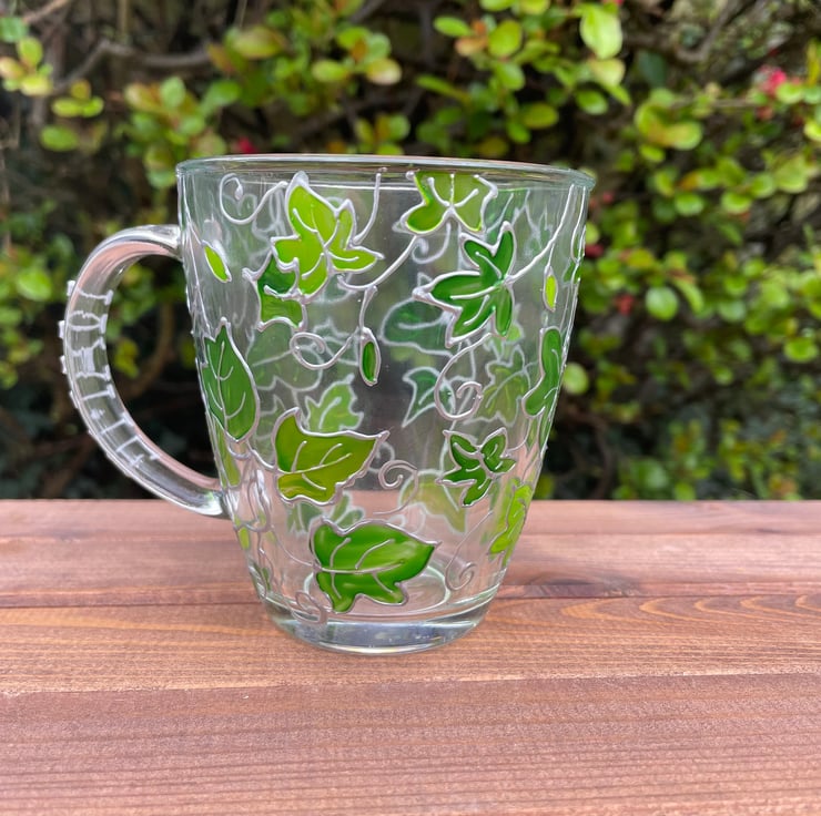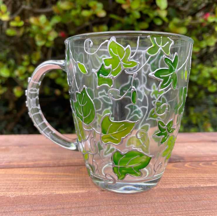 Hand Painted Coffee Mug with Personalisation Green Ivy Woodland Mug