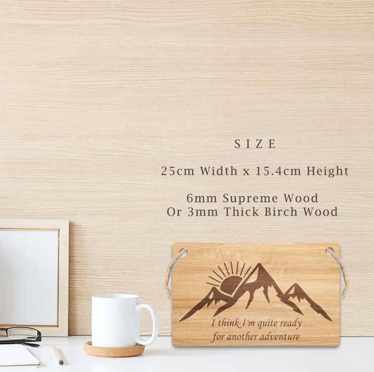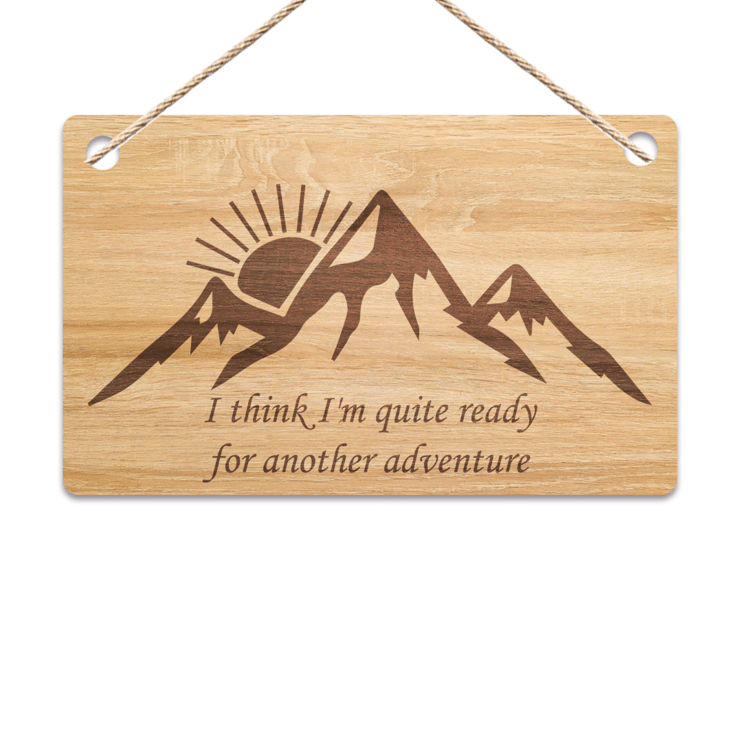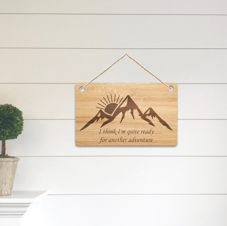 Embrace the spirit of adventure with our beautifully crafted wooden plaque featuring engraved mountains. This timeless piece, 'I think I'm quite ready for another adventure.' Elevate your space with a touch of wanderlust, a perfect reminder to embark on new journeys.