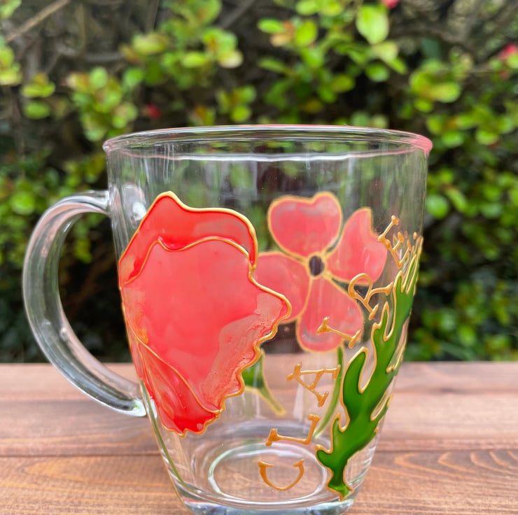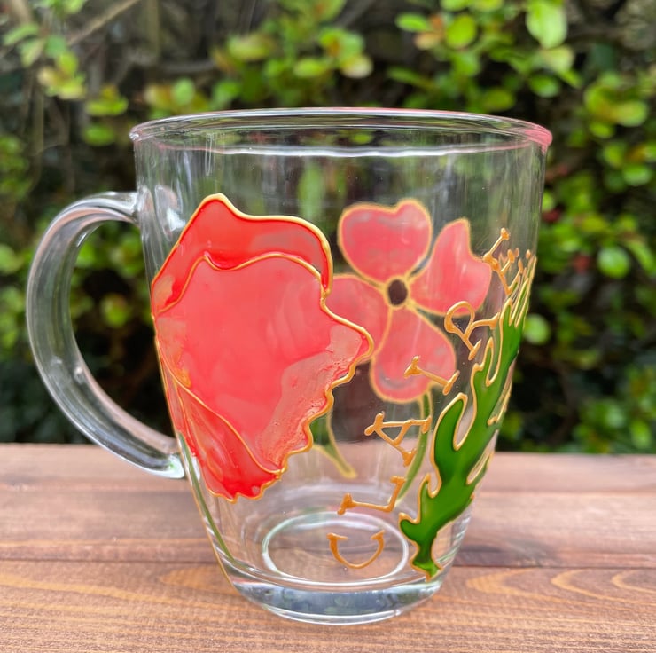 Hand Painted Glass Mug Poppy Gifts with Personalisation