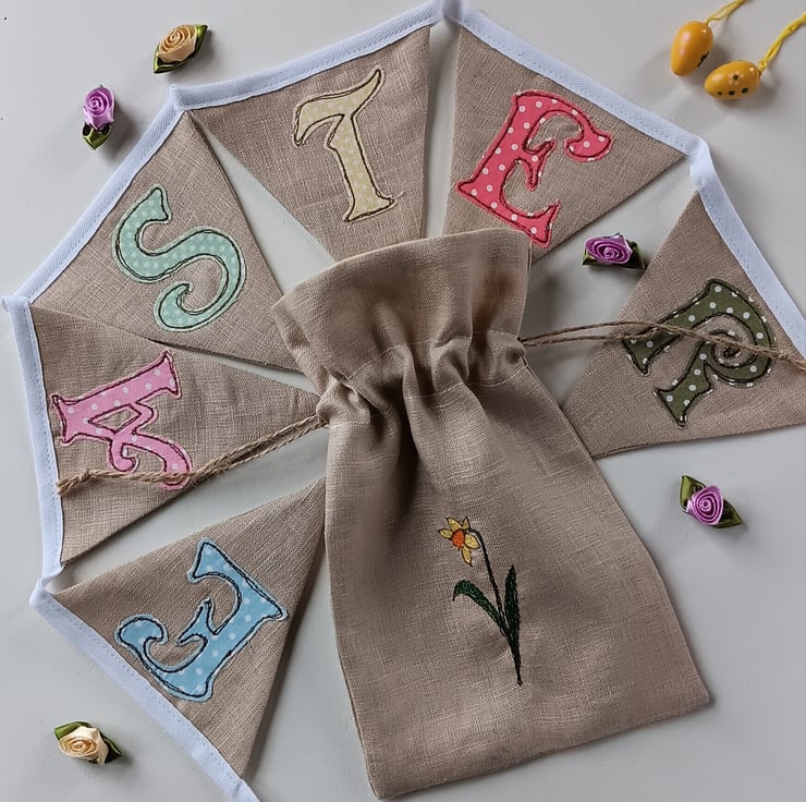 Easter Bunting with Daffodil Drawstring Bag