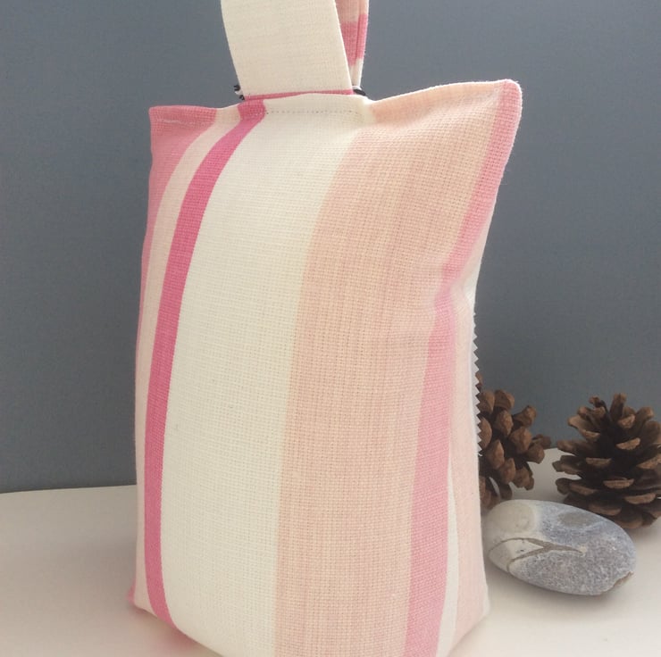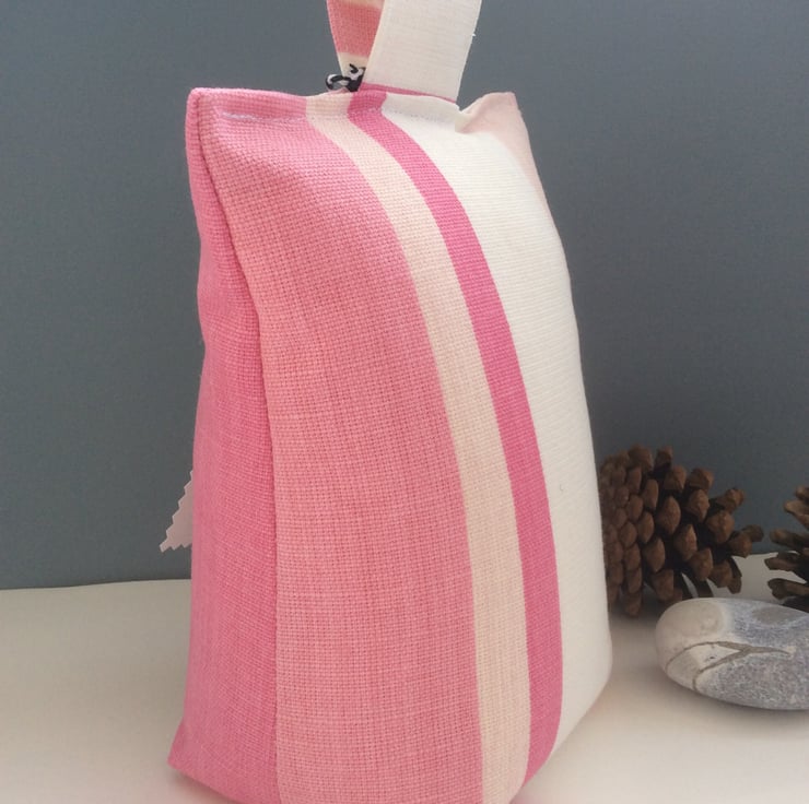 If you love Laura Ashley, then this pretty door stopper made with pink and white striped fabric is a perfect way to bring a little of her style into your home.