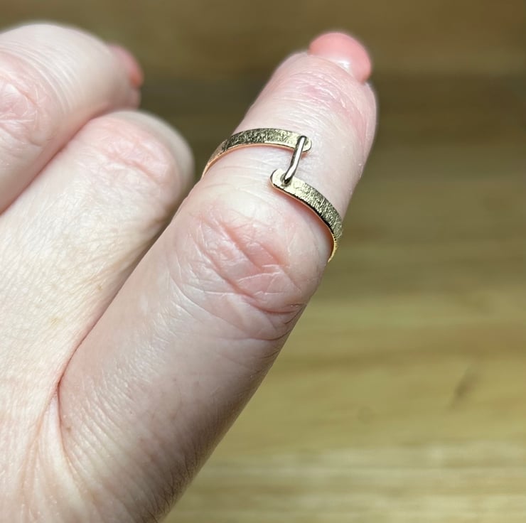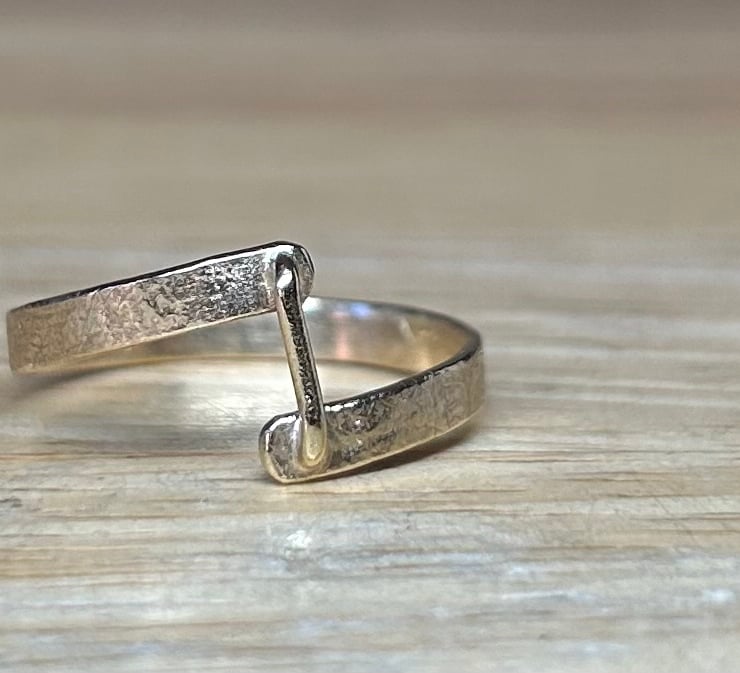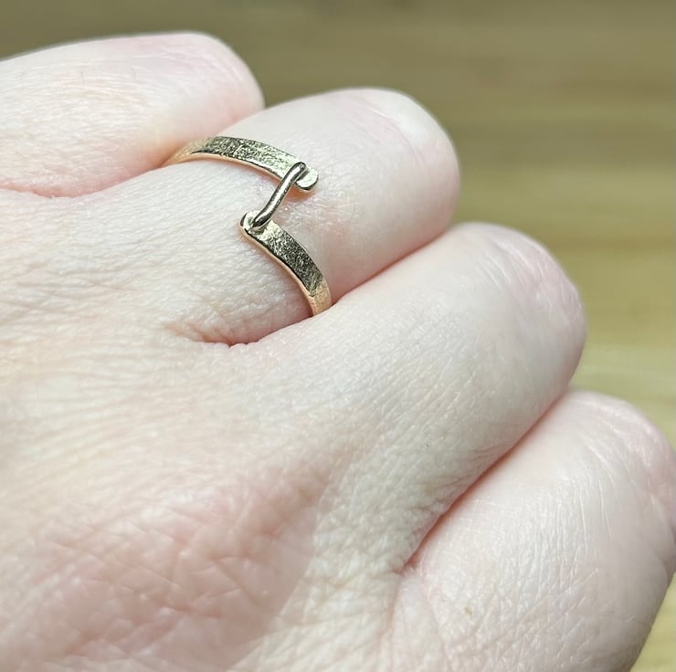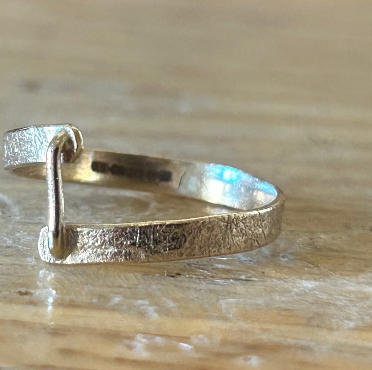 Gorgeous solid 9ct gold textured ‘staple’ bar ring uk ring size o-p. Beautifully unique! This ring looks absolutely stunning on. Has been hallmarked at the assay office for authenticity of the gold used.