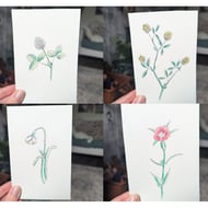A 7" x 5" flat canvas painting of Amethyst Deceiver Mushrooms in acrylic paint, finished with an acrylic varnish.