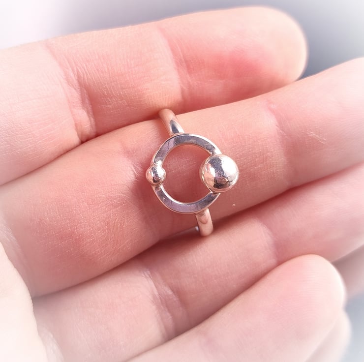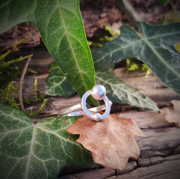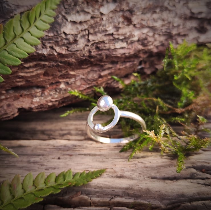 Sterling silver ring with two solid silver balls