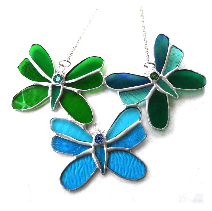 I've made three little butterflies joined, so they fly all together, into a pretty shape as a single suncatcher.