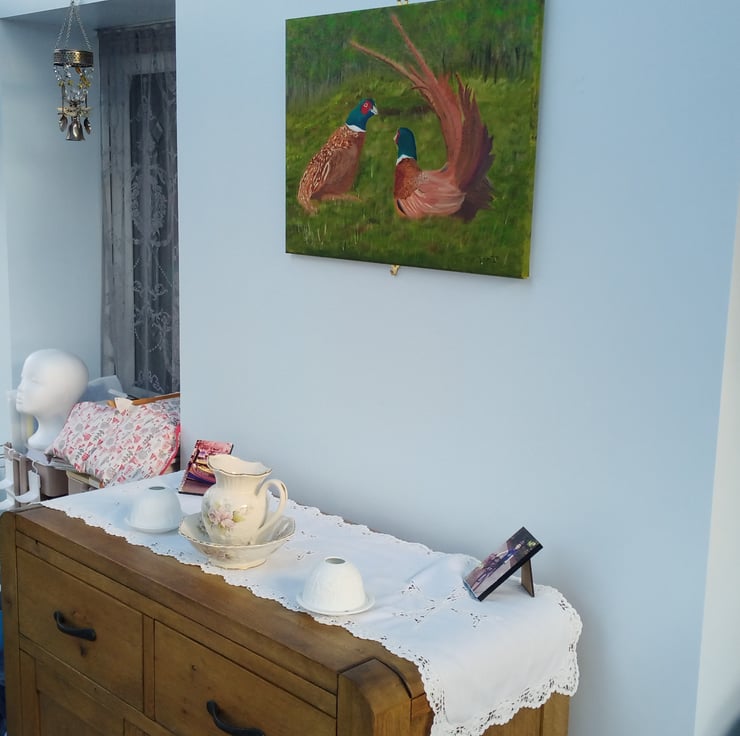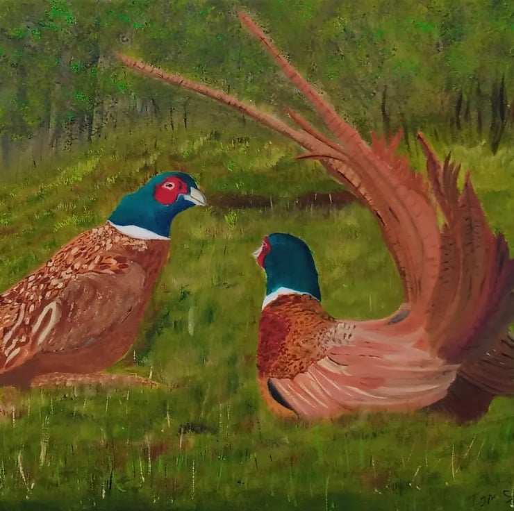 We have so much Wildlife around us in Caithness and these 2 male pheasant, were an ideal inspiration t attempt to capture on canvas.