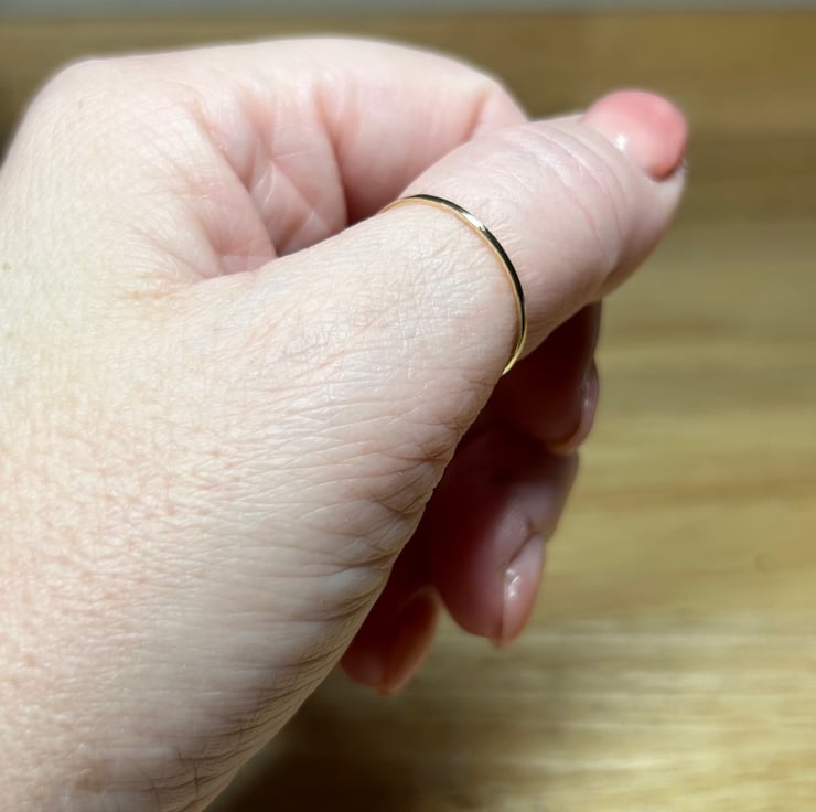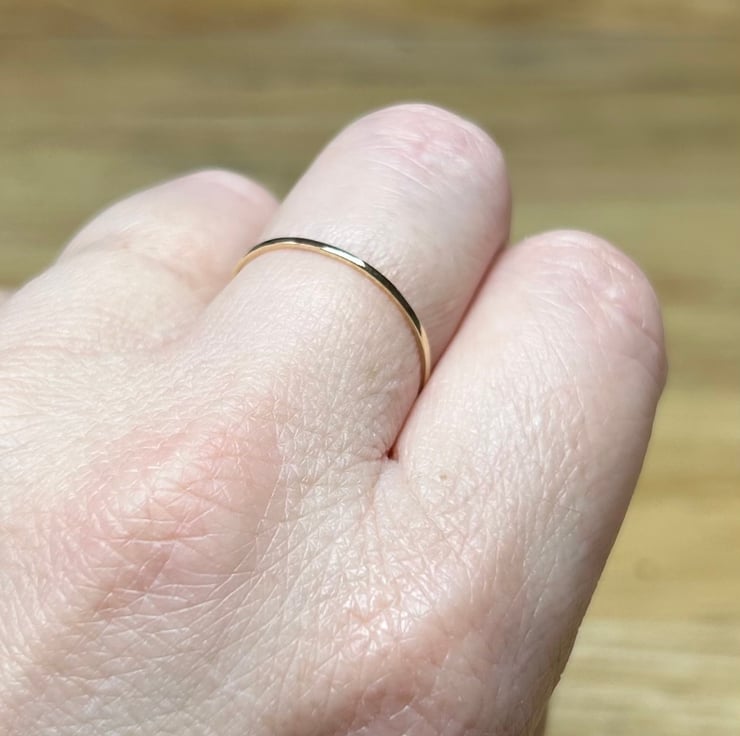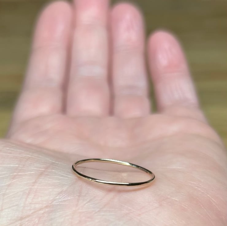 Simply beautiful 9ct gold minimalist ring in a uk ring size Q. This elegant ring is perfect to wear on its own on any finger/thumb or as a stacking ring. Has been hallmarked at the assay office for authenticity of the gold used.