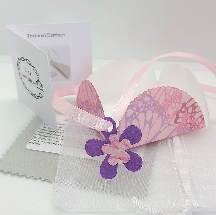 These will arrive in a gift pouch inside one of my handmade gift wraps, also included is a product card and a silver polishing cloth, posted via tracked delivery.