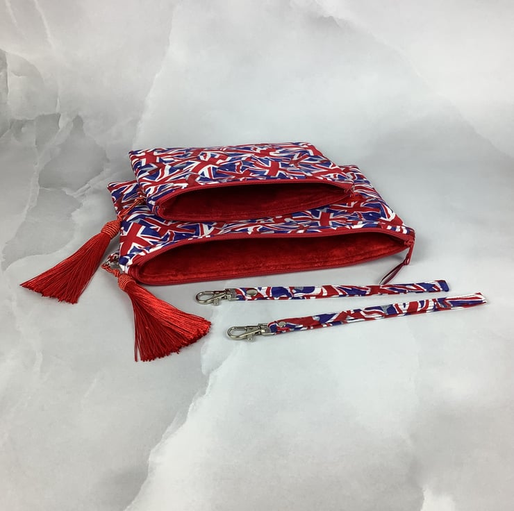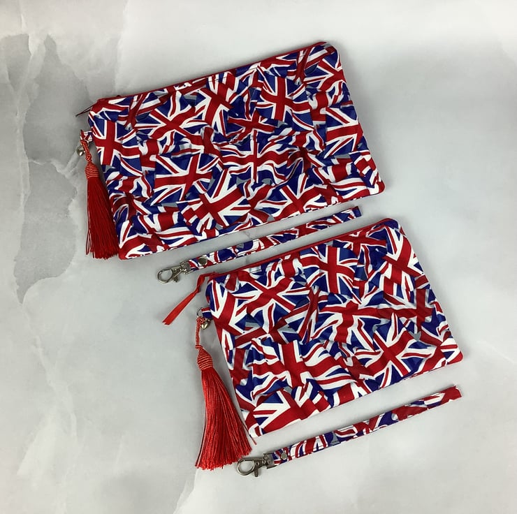 Union Jacks zip clutch bag.