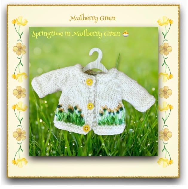 A beautiful little ivory cardigan, embroidered with Spring flowers, to fit the Mulberry Green characters. The cardigan is hand knitted in pure Icelandic wool.