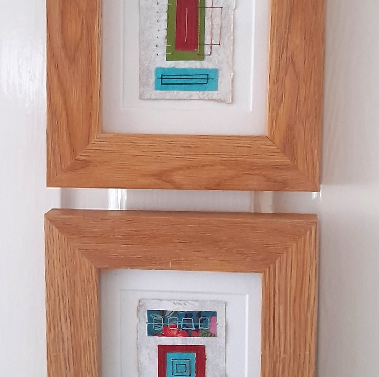 The design of my Handstitched Geometric Squares and Rectangles, I actually made years ago, originally for greeting cards but this past year when I’ve been getting ideas together for my shop, I decided they should be framed instead as they make really pretty little pictures! I’ve always been drawn to geometric paintings and art, but I also love textiles and I was just inspired one day to put the two ideas together & came up with these designs - My Handstitched Geometrics Squares & Rectangles Collection - Shiny Naturals, Pretty Patterns & Colourful Combinations. There is an array of different colours to choose from to match any interior colour scheme. A lovely little treat for yourself or as a present! I wanted to keep the art pieces small so that they could easily fit into anyone’s home, they can be hung on the wall or can sit on a shelf.
