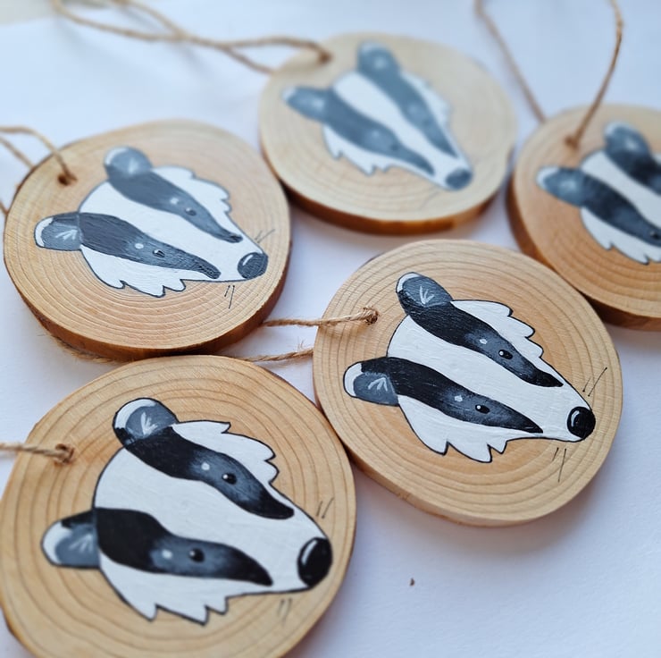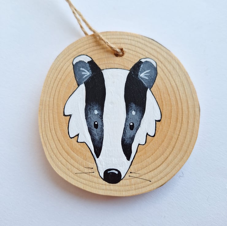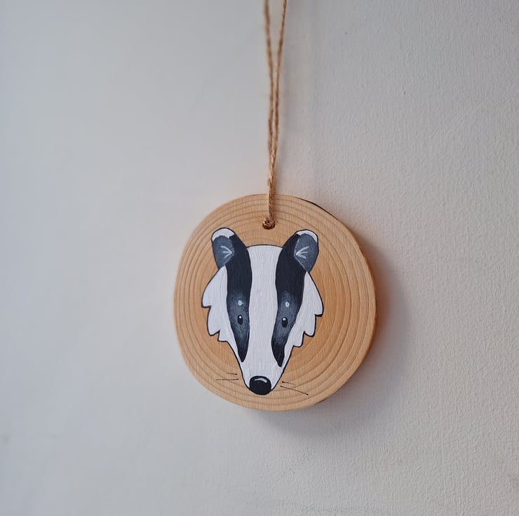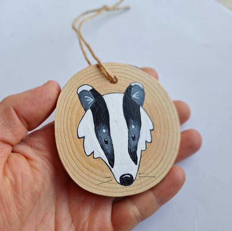 A little wooden slice , featuring a hand painted and varnished Badger design!