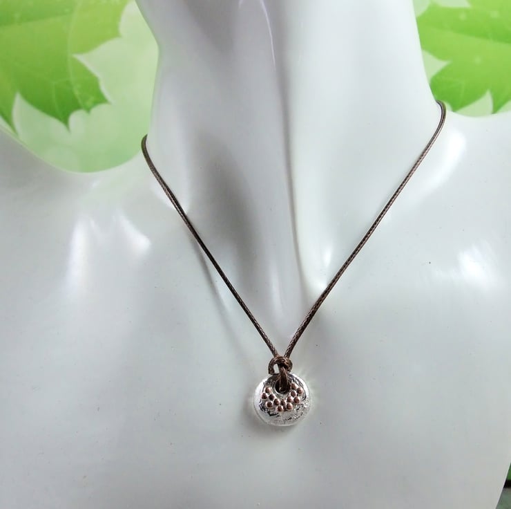 Recycled Silver pebble necklace with copper accents. Fitted to adjustable length waxed cord.