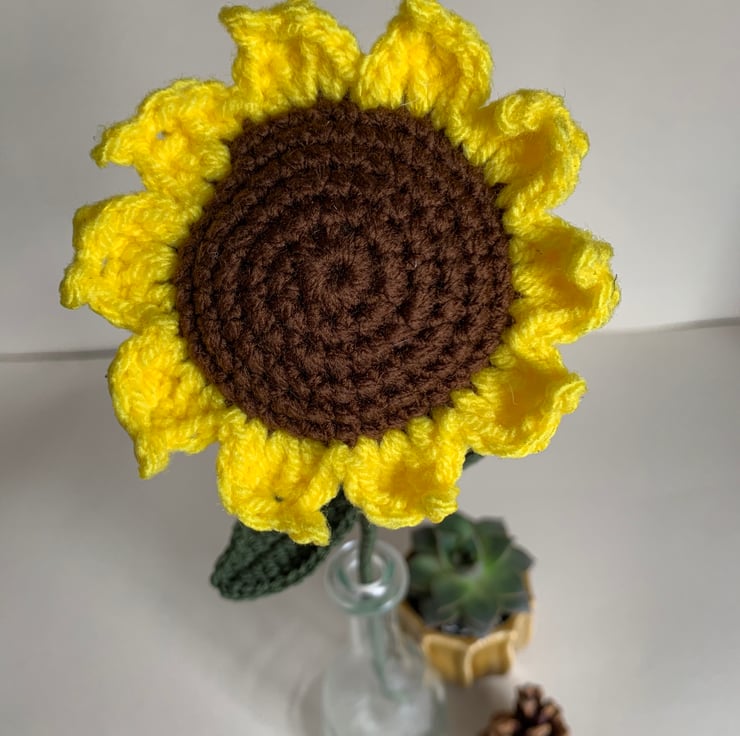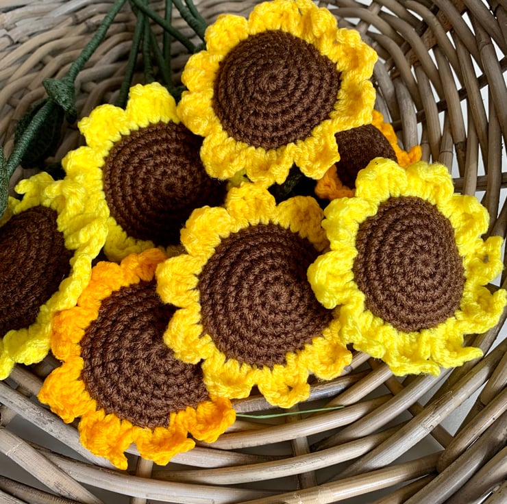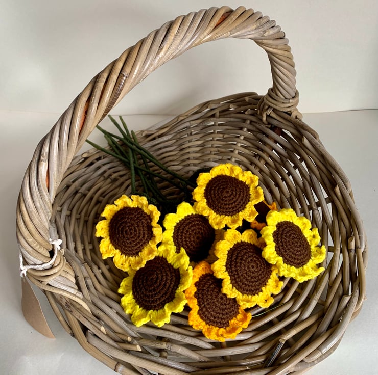 Each flower is crocheted by me in my home in Fleetwood these realistic sunflowers will brighten up your home all year.