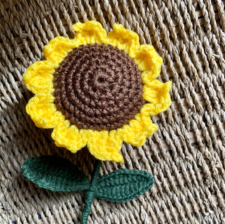 Crochet Sunflower. This handmade crochet sunflower comes in a choice of 3 shades of yellow. Can be purchased as an individual flower or as 3 or 5 flowers at a reduced price, using the drop down menu.