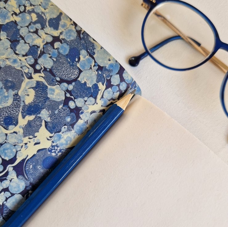 Denim Blue Leather Journal, Notebook or Sketchbook lined with Marble Paper