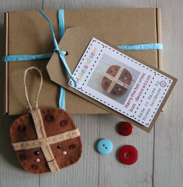 Make and sew a cute Harry the hot cross bun Easter decoration with this craft kit. The kit would make a great gift for someone crafty, a child or just treat yourself. You could buy the kit and make the decoration for someone special.
