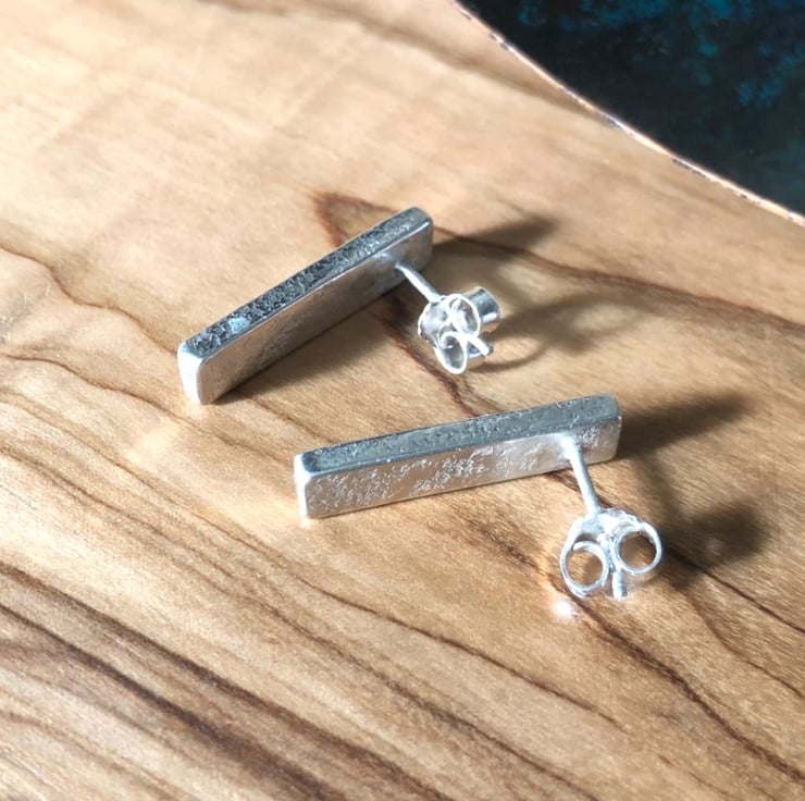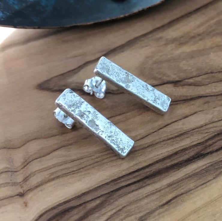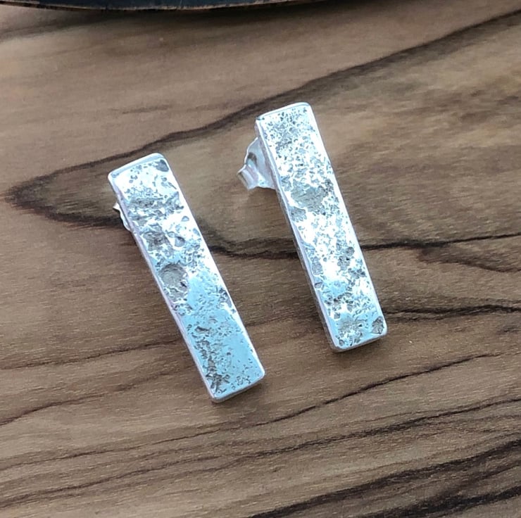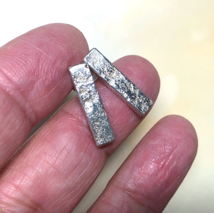 Made in Argentium Silver these lovely little stud earrings are beautifully textured front and back. They measure approx. 20mm long x 10mm wide and are about 2mm thick. I've a pair of these which I wear frequently and they are so comfortable and very feely touchy.
