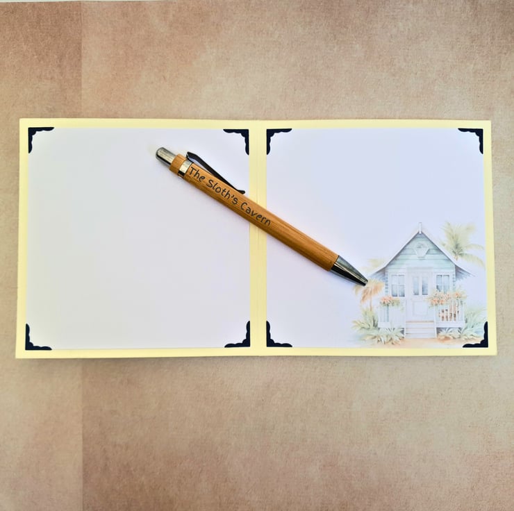 Handmade card displaying a house on the beach, perfect for many special occasions like birthdays, retirement, Father's Day, travelling & so on!