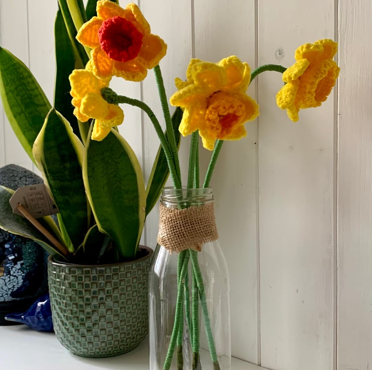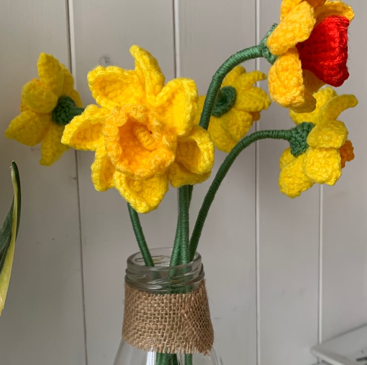 These crochet daffodils are handmade by me in Fleetwood. Welcome spring with these cheerful flowers. A lovely addition to your Easter decorations.