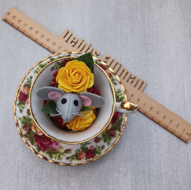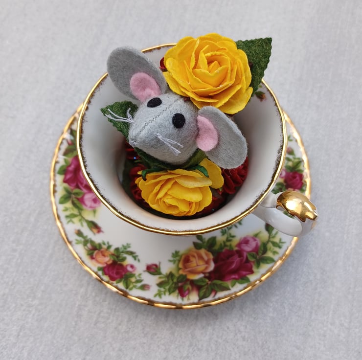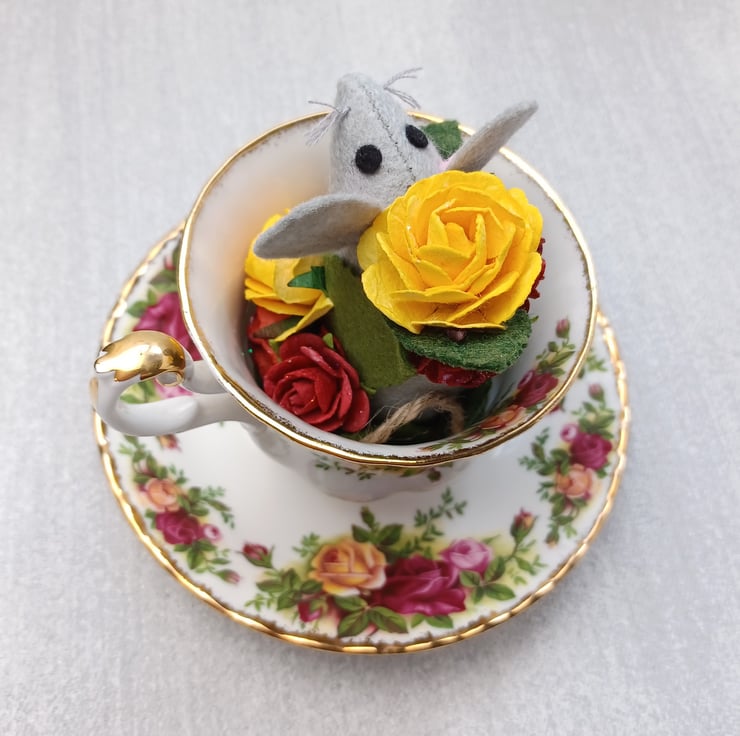 Teacup mouse - surrounded by roses