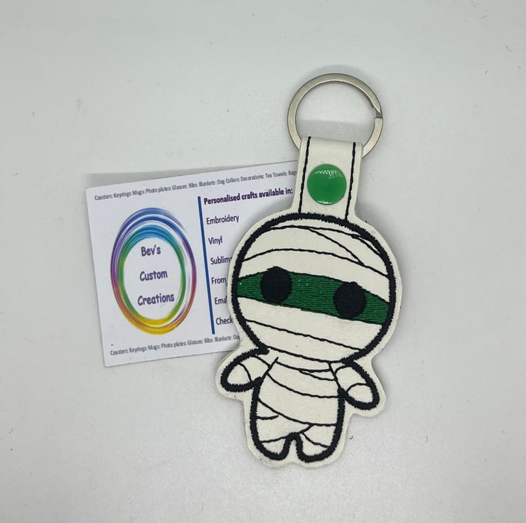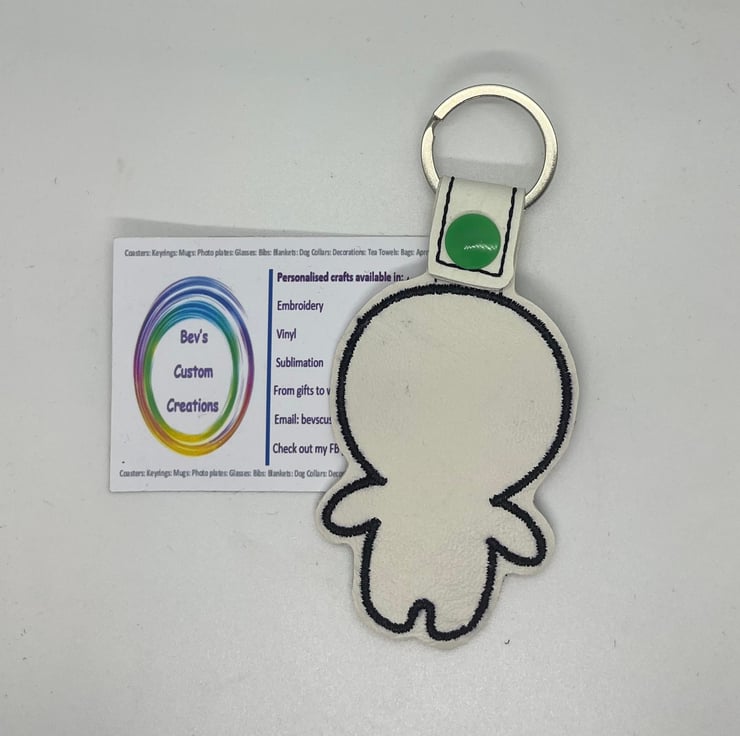 Marine vinyl makes the keyring shower proof. The design is on the front only and the back is plain.