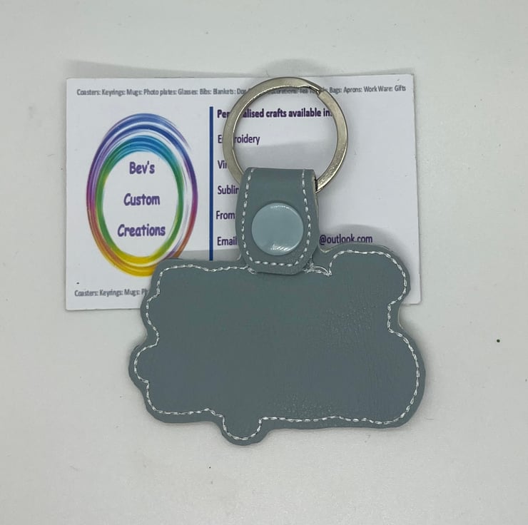 Marine vinyl makes the keyring shower proof. The design is on the front only and the back is plain.