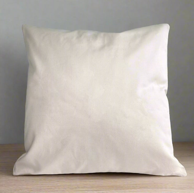 The cushion cover is printed in vibrant colours with a natural, stone-coloured reverse. It is made in the UK from 100% cotton in a heavy 308gsm and measures 45cm square (18 inches). It would be ideal for an 18 inch square cushion inner and comes with a hidden zipper.