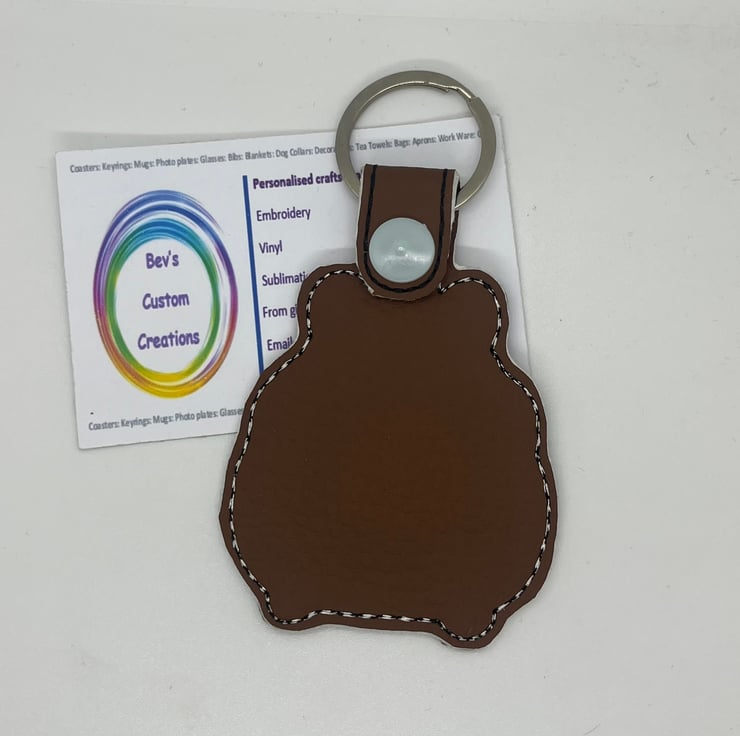 Marine vinyl makes the keyring shower proof. The design is on the front only and the back is plain.