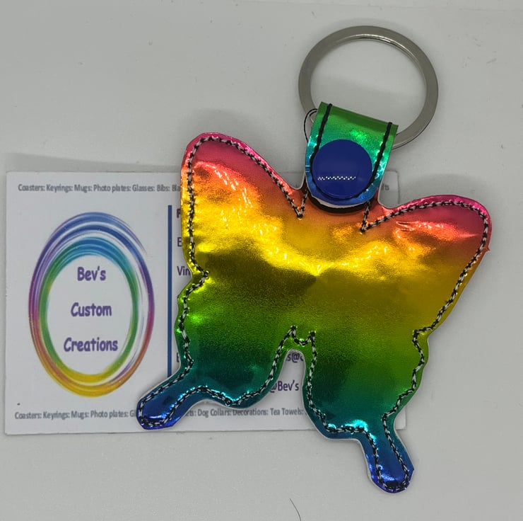 Rainbow vinyl makes the keyring shower proof. The design is on the front only and the back is plain.