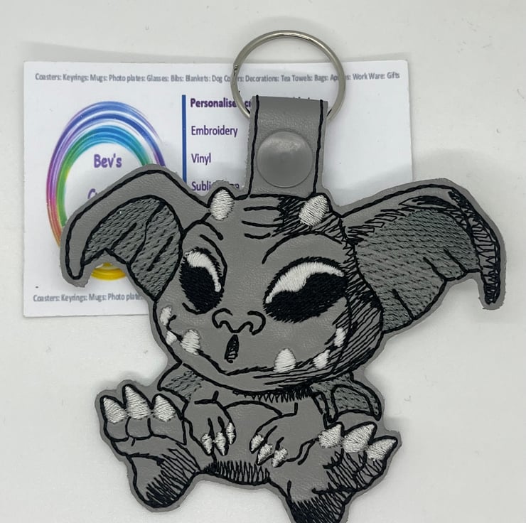 Embroidered Gargoyle Keyring.
