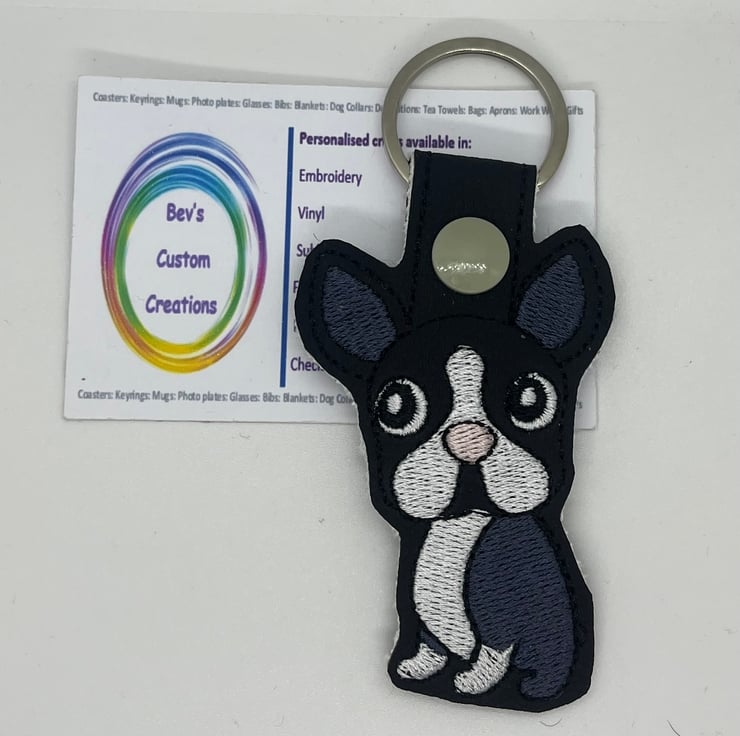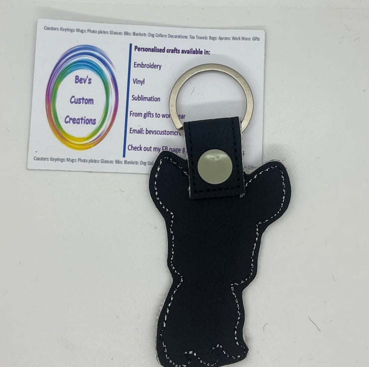 Marine vinyl makes the keyring shower proof. The design is on the front only and the back is plain.