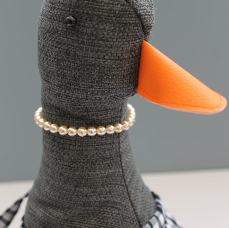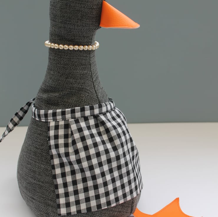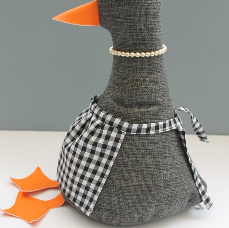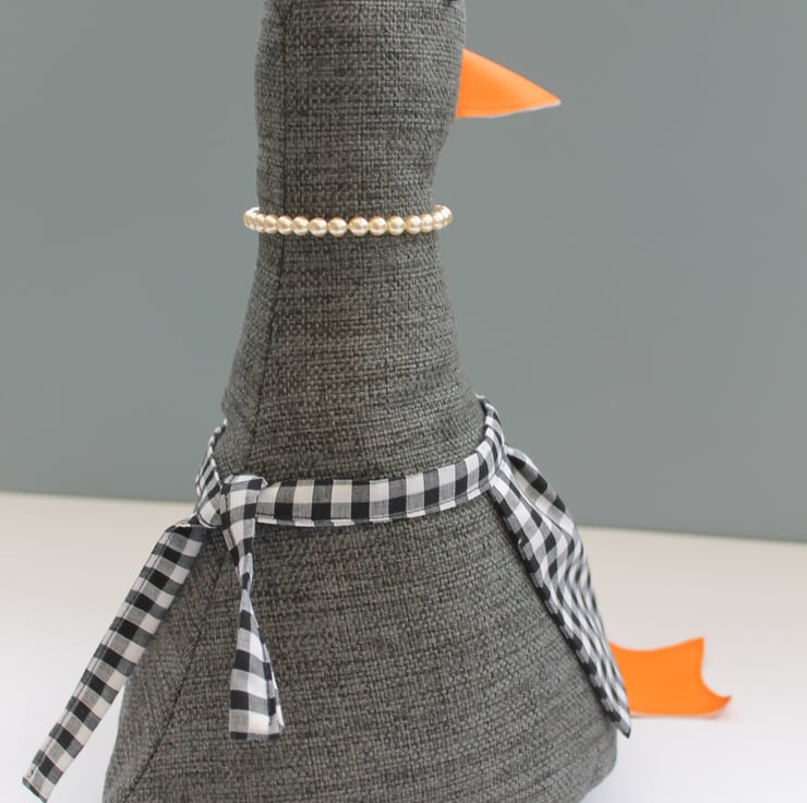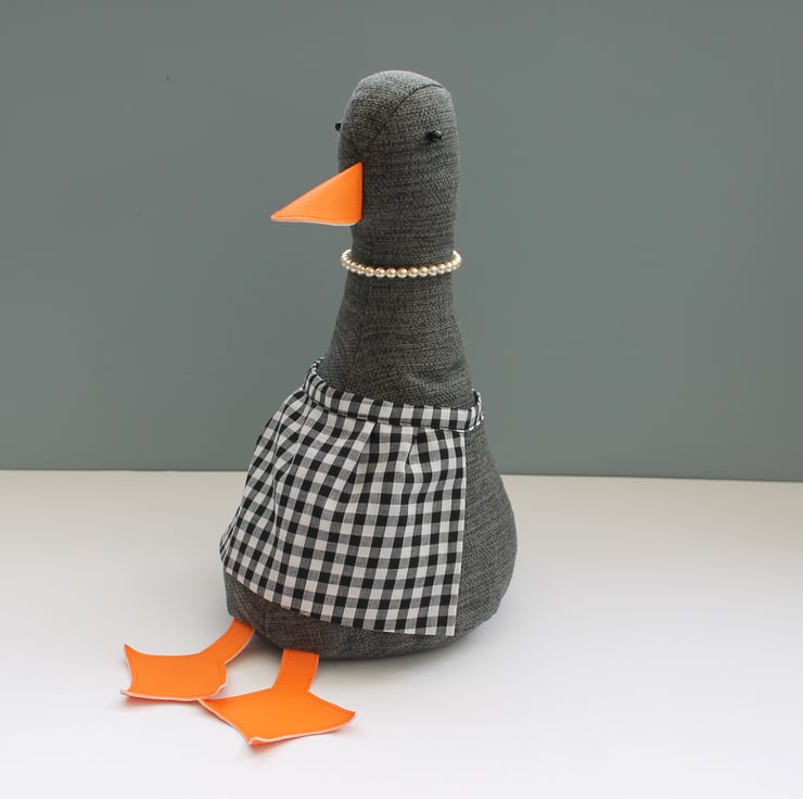 Handmade goose door stopper made from dark grey fabric. This adorable goose comes flat packed for filling at home.