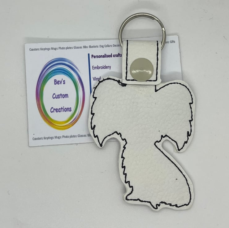 Embroidered Papillon keyring.