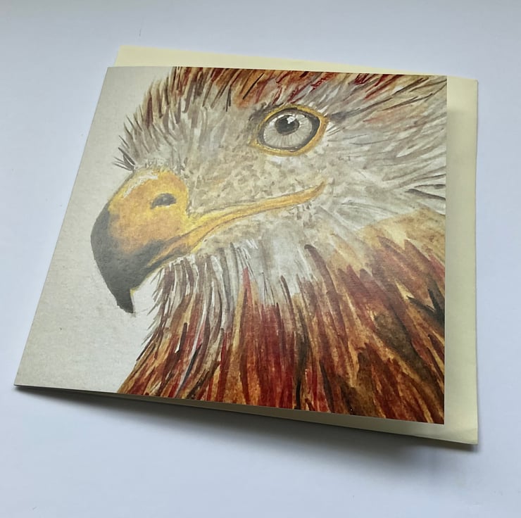 This original card design in watercolour and ink is my version of a red kite . The greetings card is blank inside for your own personal message’ .The card would be suitable for any occasion such as birthday,thank you,friend ,or maybe for a keen bird lover