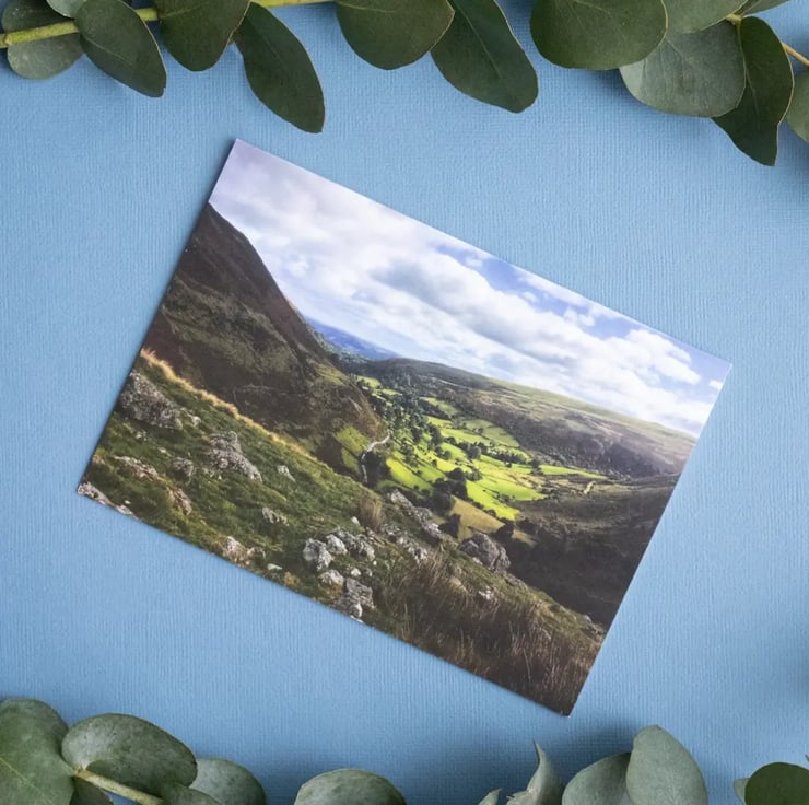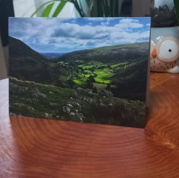 Original image capturing the sun-kissed mountains and valleys of Wales, showing the many different greens of the valley near Pistyll Rhaedr in North Wales.