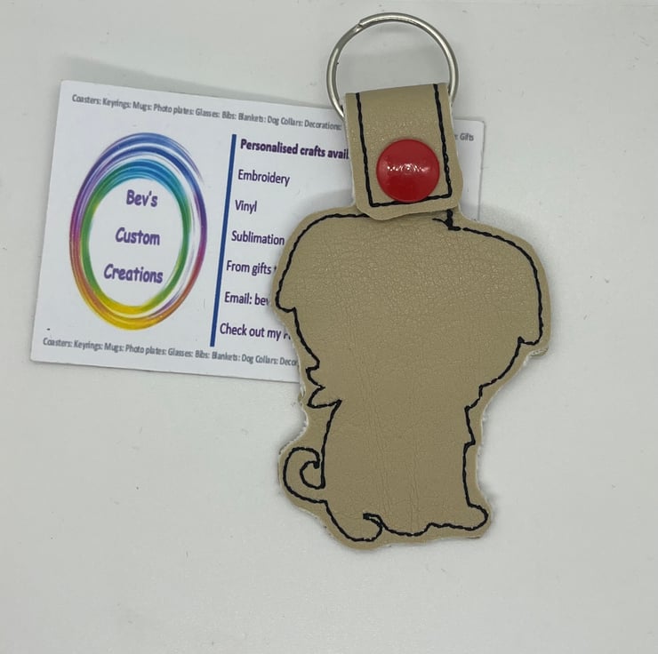 Marine vinyl makes the keyring shower proof. The design is on the front only and the back is plain.