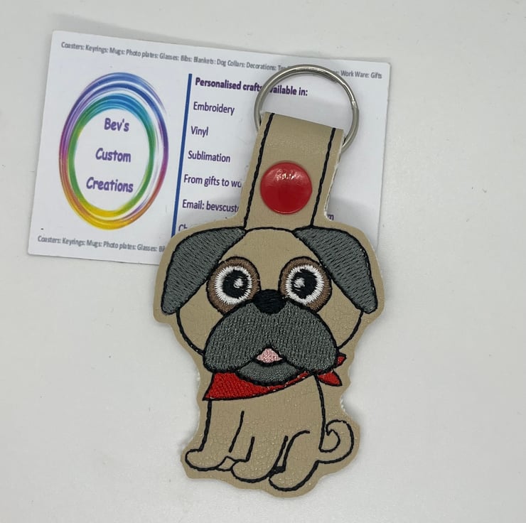 Embroidered Pug Keyring.