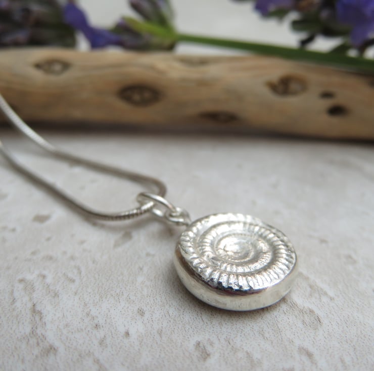 I love beachcombing and finding the occasional ammonite fossil is such a joy. Knowing how old they are and what beautiful textured chambers they have I wanted to showcase the amazing patterns in this sweet little silver pendant and ensure it would last a lifetime.