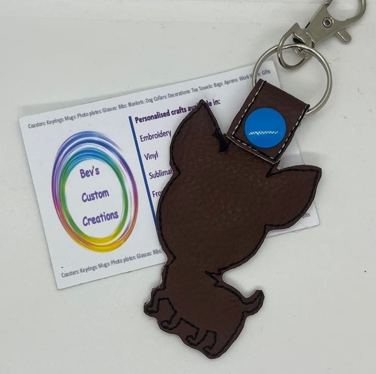 Marine vinyl makes the keyring shower proof. The design is on the front only and the back is plain.