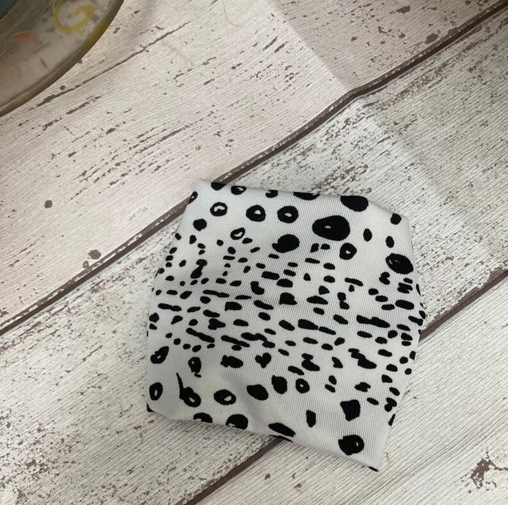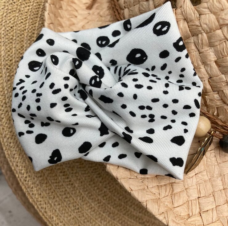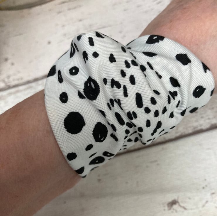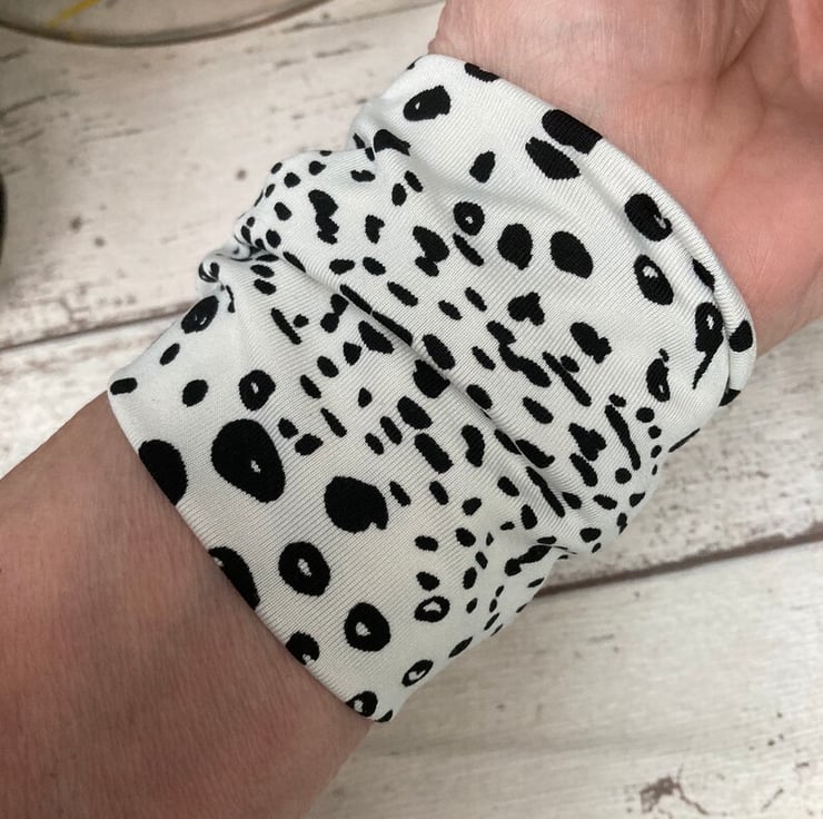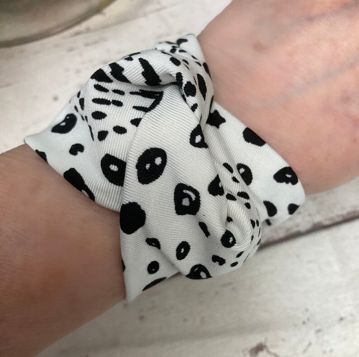 An off white and black design cuff in lovely lightweight stretch polyester fabric.