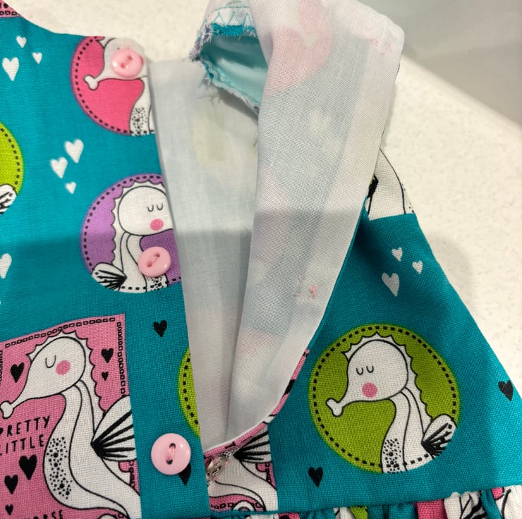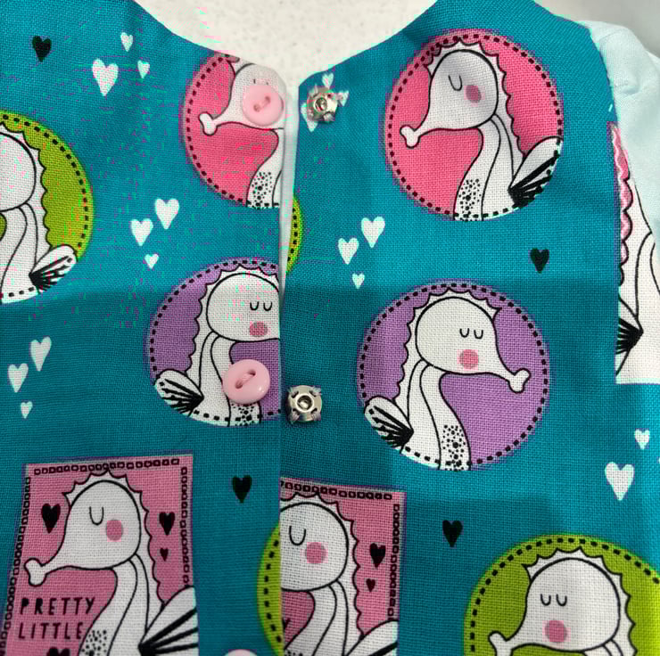 The tunic is closed with dolly size buttons and snap fasteners. Suitable for children 3 years and over. Small parts.
