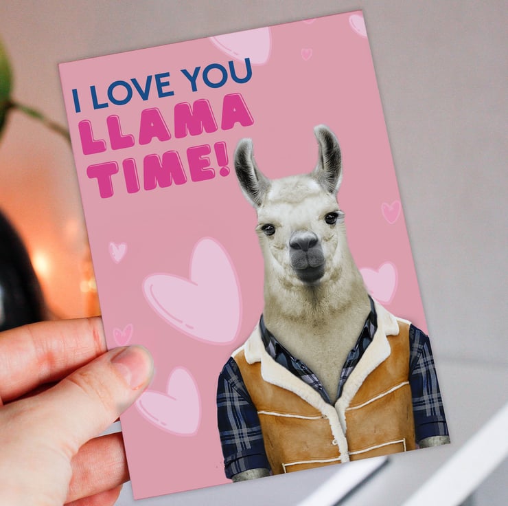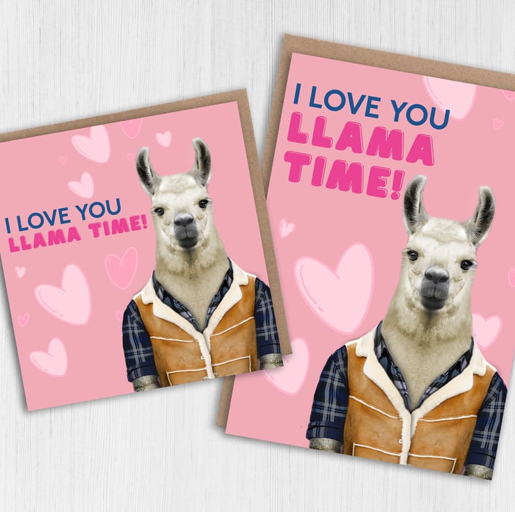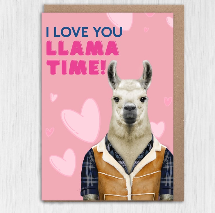 I love you llama time cute, funny animal anniversary card for wife, husband, boyfriend, girlfriend (Animalyser) Size A6/A5/A4/Square