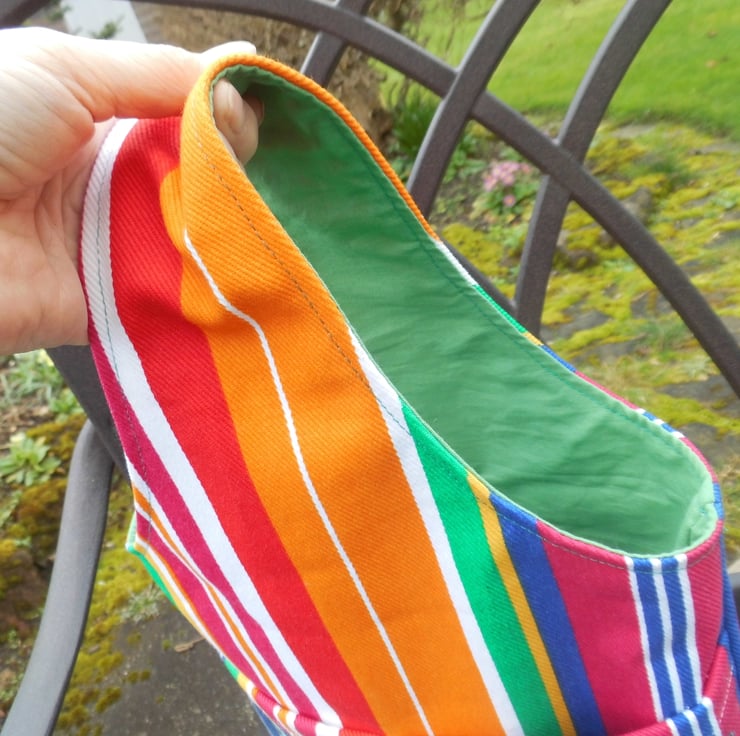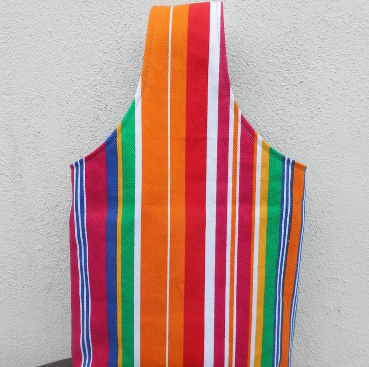 I made this single-handled tote bag using a strong and brightly striped cotton canvas.
