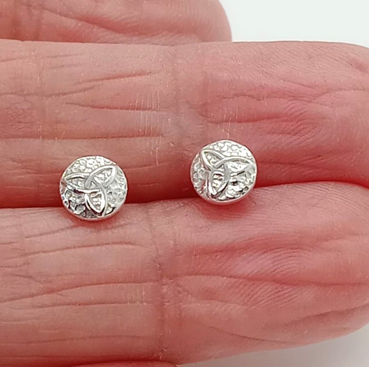 Handmade Sterling silver Trinity knot Triquetra earrings in a stud fitting.