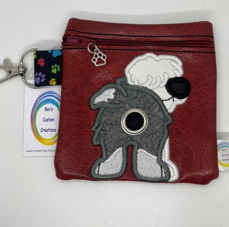 Embroidered Old English sheep dog poo bag dispenser.