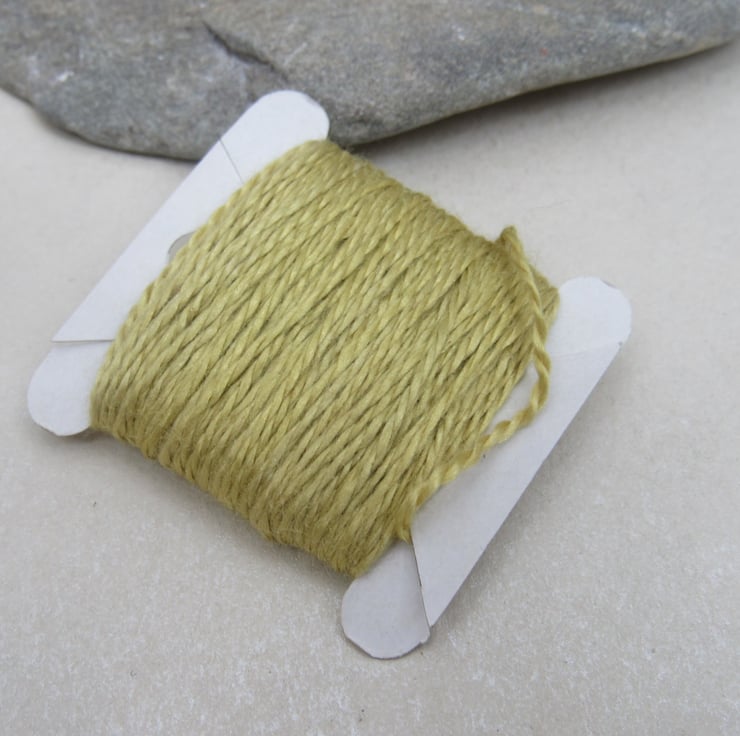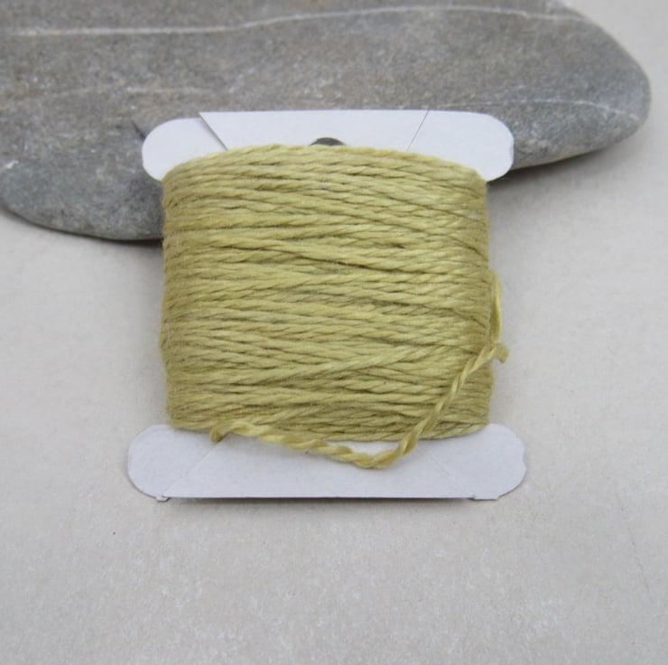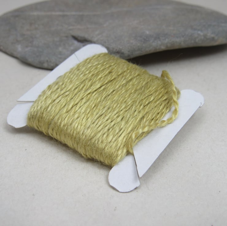 Hand dyed pure silk embroidery thread, dyed with homegrown goldenrod dyes to give a soft greenish yellow.